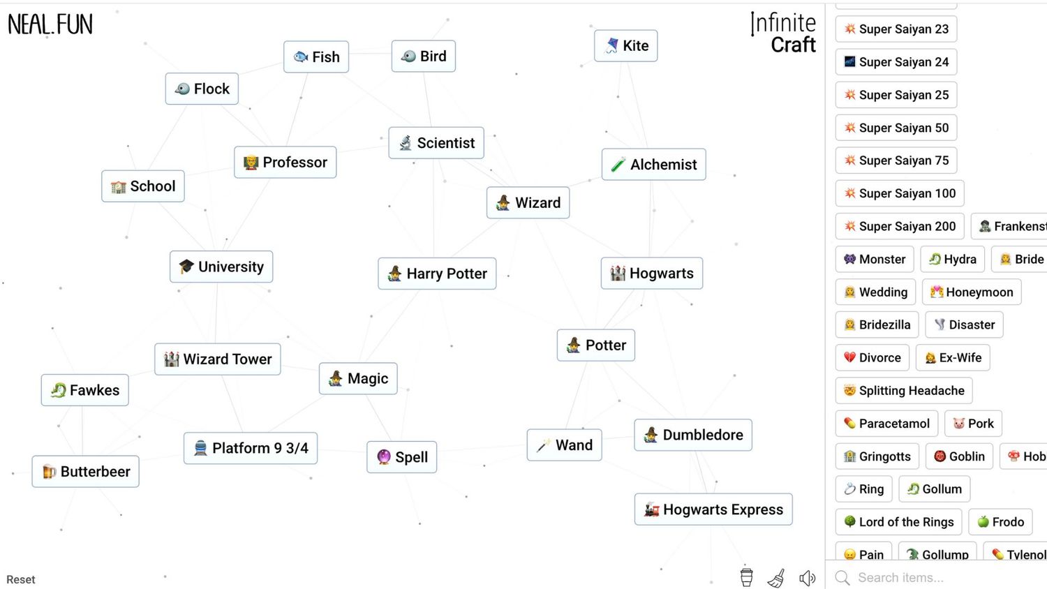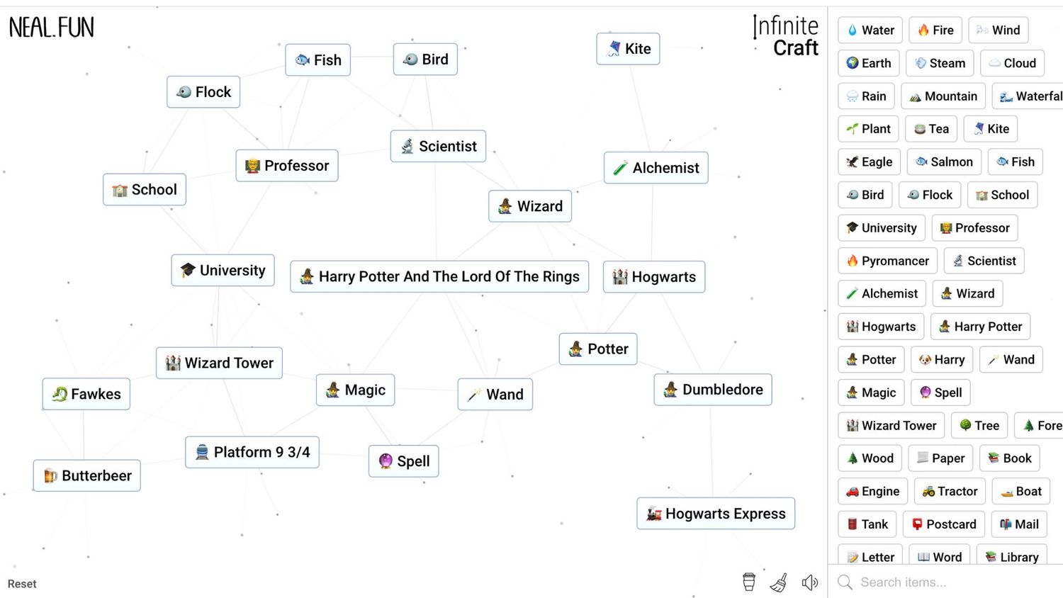 Artesanía infinita es un juego de navegador que permite a los jugadores utilizar cuatro materiales básicos para crear cualquier cosa que se les ocurra, incluido Harry Potter. El cuatro materiales base Los jugadores comienzan con Tierra, Fuego, Viento y Agua. Al combinar dos de estos, los jugadores pueden crear un material completamente nuevo que luego puede usarse para hacer algo más, y así sucesivamente.