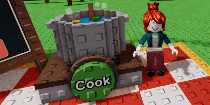 En esta estación de cocina, pararse en la alfombra de picnic roja y blanca y Dirígete a la olla con el gran icono verde que dice “Cocinar.” Después de esto, estará listo para comenzar y puede seguir los sencillos pasos a continuación para obtener cualquier tipo de helado que esté preparado para crear: