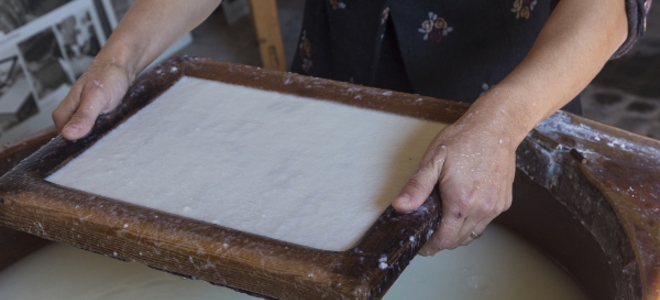 Una vez que se haya drenado el exceso de agua, simplemente coloque el molde boca abajo, permitiendo que el papel recién formado caiga sobre una toalla. Seque con palmaditas según sea necesario y deje reposar durante 24 horas antes de usar.