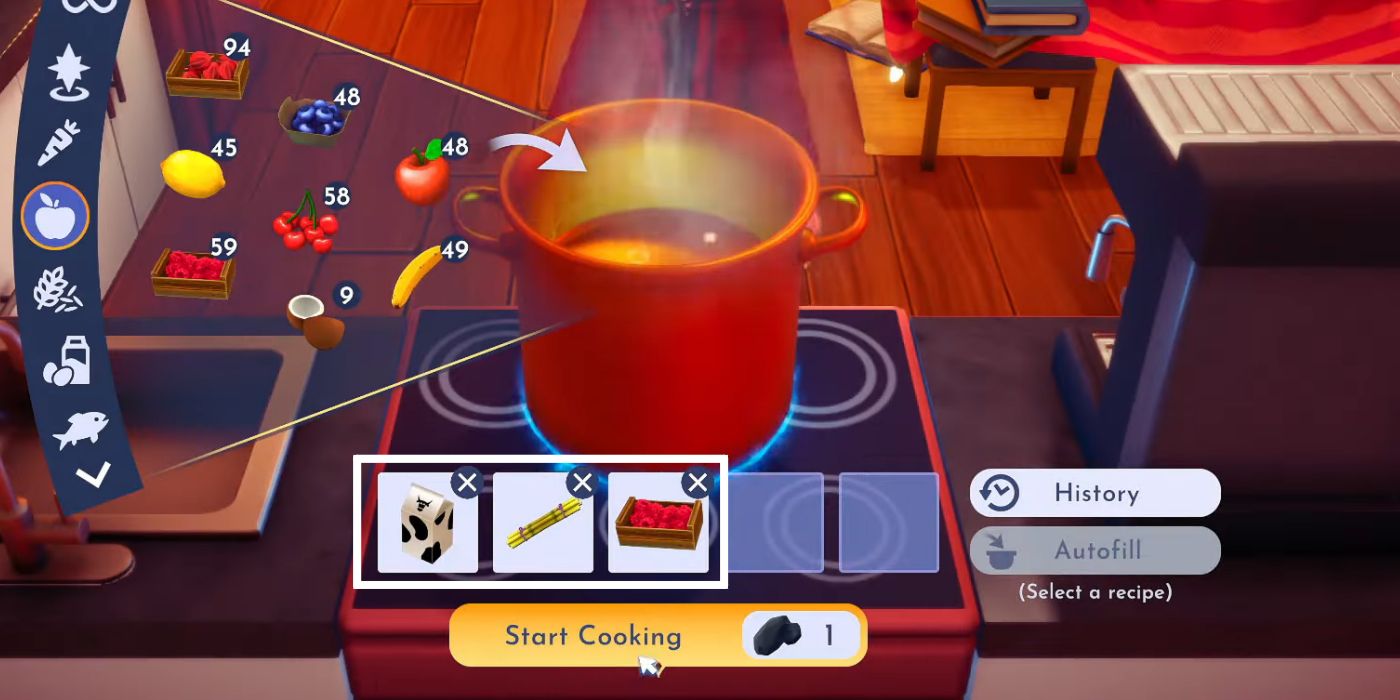 Cómo reunir los ingredientes del té Raspberry Boba en Disney Dreamlight Valley