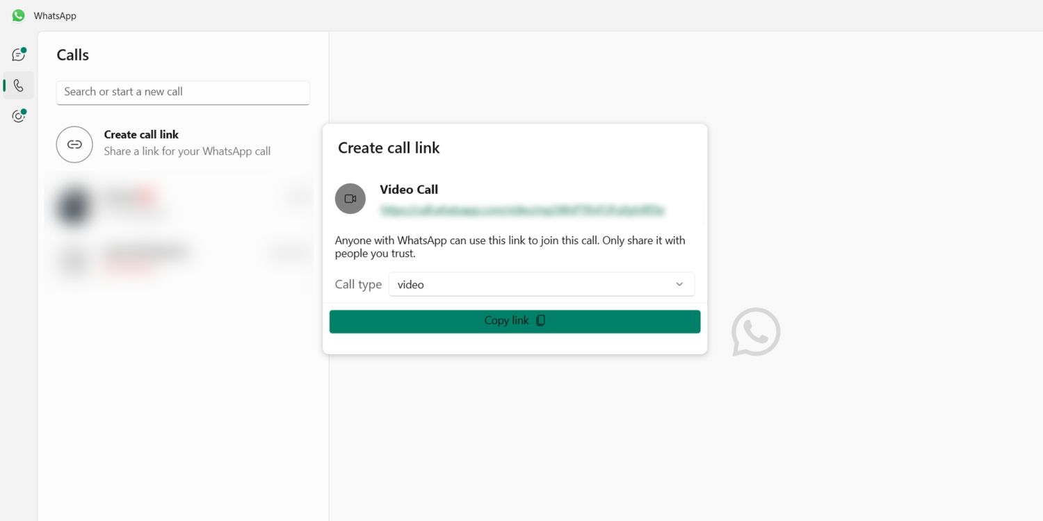 Para realizar una videollamada grupal en WhatsApp para Windows, los usuarios deben abrir la aplicación y hacer clic en el ícono del teléfono en la esquina superior izquierda. En la siguiente pantalla, haga clic en ‘Crear enlace de llamada‘, establezca el ‘Tipo de llamada‘ al video, y presione el ‘Copiar link‘ botón. Esto copia el enlace de la videollamada grupal en el portapapeles del usuario. Luego, el enlace se puede pegar en un chat de WhatsApp, correos electrónicos u otras plataformas de mensajería, como Telegram y Messenger, para invitar a las personas a la videollamada.