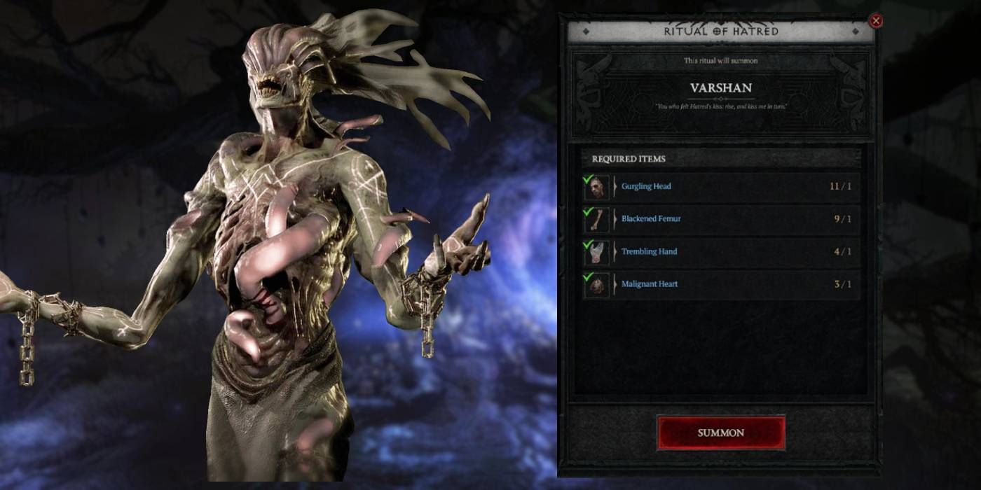“/> Para desbloquear y convocar el Eco de Varshan, debes recolecta partes del cuerpo de Varshanincluyendo el Mano temblorosa, Fémur ennegrecidoy Cabeza gorgoteante elementos. Estos se obtienen de Deudores grotescos, enemigos a los que te enfrentas durante los eventos Whispers of the Dead proporcionados por el Árbol de los Susurros. Combinando un Corazón maligno con las Piezas en la mazmorra de La Madriguera activa el ritual en Diablo 4haciendo aparecer a Varshan.