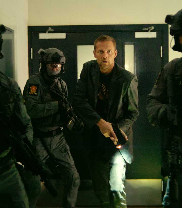 Jo Nesbø: Hay una línea ahí porque, como puedes ver, Tobias es un tipo realmente agradable y comprensivo. Y Harry es este tipo frío que siempre está cerca del abismo. Hay una línea allí donde usted sostiene un arma y le pregunta a su colega: “¿Qué crees que hace que un hombre dispare a personas inocentes?” Y él da algunas sugerencias, tal vez una locura. Y luego te pregunta: “¿Qué piensas?” Y tú estabas allí con un primer plano diciendo: “Para silenciar las voces”. Y es como mirarte ahí mismo, “Está bien, él está allí. Ahora está en el abismo”. Fue escalofriante verte de esa manera. Pero luego ya no te conocí.