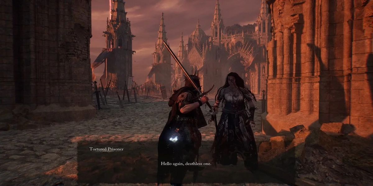Una vez libre, el Prisionero Torturado actuará como vendedor fuera de la arena de lucha del jefe Pieta. Como vendedor, el ex prisionero venderá armas y hechizos infernales. Sin embargo, hay otra razón para liberar a la Prisionera Torturada: se la puede invocar para ayudar en peleas contra jefes como el Lucha silenciosa contra el jefe Santo.