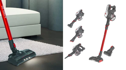 Una propuesta dos en uno que puede utilizarse como aspiradora escoba o como aspirador de mano. Se adapta a todo tipo de tejidos del hogar como sofás, cojines, camas, alfombras o moquetas y resulta muy cómodo de usar. Dispone de 40 minutos de autonomía y reduce notablemente la frecuencia de vaciado gracias a su bolsa de 900 mililitros de capacidad. Incluye distintos accesorios para llegar a todos los rincones y de dos rodillos especiales para suelos de madera, suelos duros y moqueta.