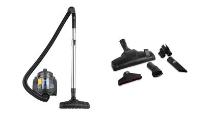 Un modelo compacto y ligero, ideal para la limpieza periódica que requieren las alfombras del hogar. Se trata de una aspiradora ciclónica, cilíndrica, sin bolsa y con una potencia de 700 vatios. Dispone de una boquilla de triple acción que absorbe a fondo la suciedad voluminosa y fina, y está equipada con un filtro HEPA 12 que captura más del 99,5 % de las partículas. El cable tiene una longitud de 5 metros y el depósito una capacidad de 1,5 litros.