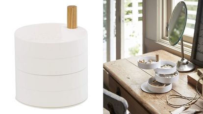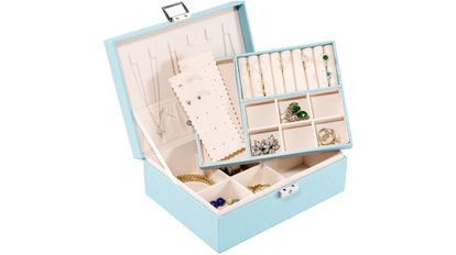 Esta es otra opción para mantener tus joyas siempre en buen estado y bien localizadas en un solo lugar. El organizador está hecho en cuero y resistente al agua, y cuenta con un forro de terciopelo suave. Todos sus compartimentos pueden moverse según nuestras necesidades y equipa una cerradura simple con candado. A la venta en seis colores diferentes.