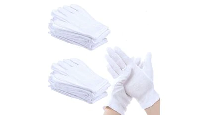 Aunque no lo parezca, los dedos y las manos (también las uñas) pueden arañar levemente las superficies de las joyas más delicadas. Por eso, nada mejor que hacernos con unos guantes como los de la imagen. Absorben bien la humedad generada por la mano y se adaptan bien a ella al ser elásticos.