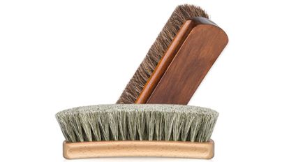 SI deseamos aplicar un brillo especial a nuestros zapatos, necesitaremos un cepillo abrillantador como el de la imagen. A la venta en un lote de dos (de cerdas oscuras, para la crema de ese color; y blancas, para todos los demás colores), dispone de un mango de madera con empuñadura lateral de fácil manejo, una longitud de 17 centímetros y unas cerdas confeccionadas con pelo de crin, que le aporta una capacidad de pulido excelente.