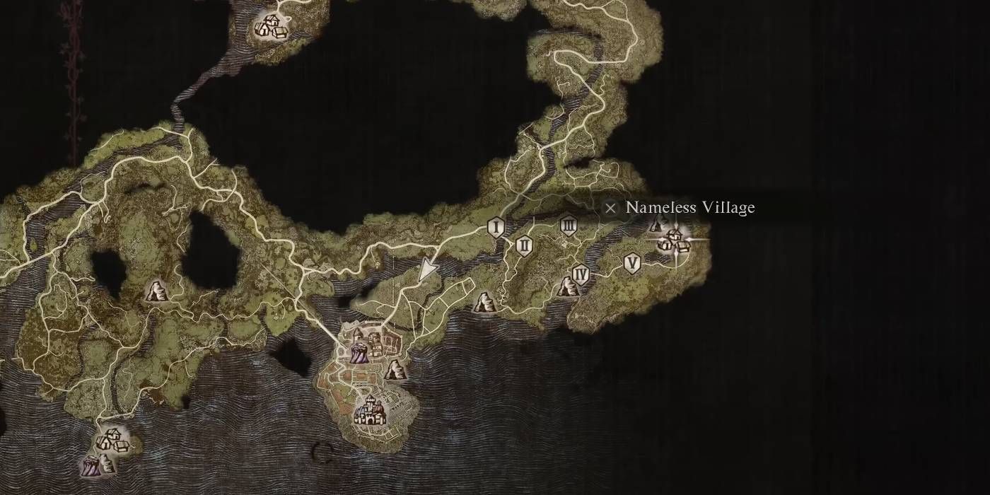 El mejor camino para aquellos que intentan ingresar a Namless Village es Dirígete al desfiladero al sur de Campfire cerca del deslizamiento de tierra.. Este barranco dentro del Bosque del Este desemboca en un valle bajo, donde puedes viajar hacia el este por la carretera bloqueada. El enorme tamaño del mapa de Dogma del Dragón 2 te permite explorar el mundo abierto en busca de rutas como esta como una forma de llegar a tu destino eventualmente.