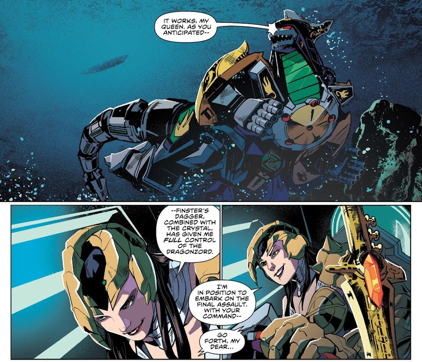 Sin perder el ritmo, Scorpina continúa su pelea con Tommy robando y pilotando su Dragon Zord en el próximo número. Luego pasa la totalidad del cuarto número causando daños insuperables en toda la ciudad, llegando incluso a atacar un barco lleno de civiles. En un corto período de tiempo, Scorpina logra sacudir el núcleo no solo de los Rangers, sino del mundo entero, causando varias bajas en el proceso. Inmediatamente, Se ha establecido que Scorpina es un problema tan grande para los Rangers como debería haber sido en el programa.