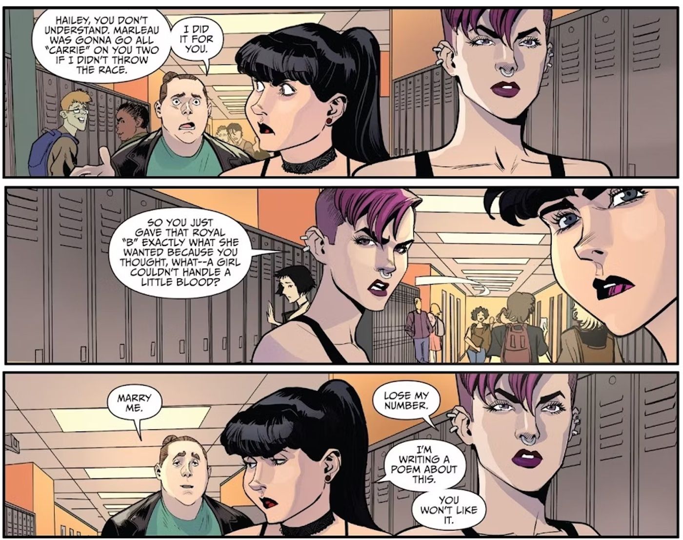 Para sorpresa de Kimberly, Skull la rechaza. Continúa explicando que no es ajeno al hecho de que ella se está apresurando a tener citas para olvidar a Matthew y que, por mucho que él quiera besarla, quiere que ella lo bese porque realmente quiere hacerlo. Skull se niega a aprovecharse de ella en una situación vulnerable. Considerando su comportamiento y reputación infantiles, Es una respuesta sorprendentemente consciente de sí misma y madura.. Siempre fue retratado como un matón tonto, pero incluso él sabe dónde trazar un límite.