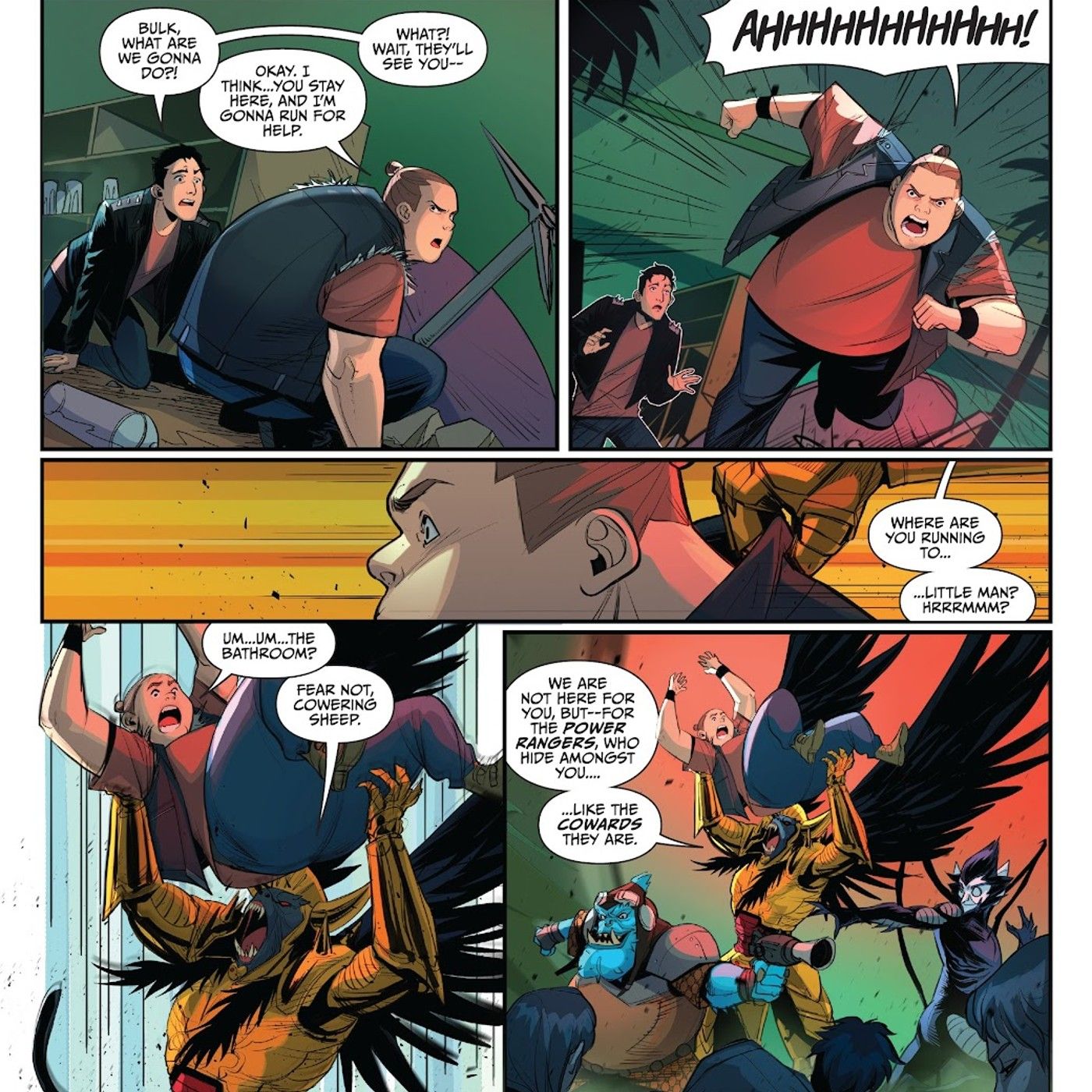 Bulk y Skull exhiben sorprendentes cantidades de valentía a lo largo de los cómics. Uno de esos momentos llega en este número cuando la barra de jugos de Ernie recibe un ataque sorpresa de los secuaces favoritos de Rita. Bulk decide huir, no para retirarse, sino para buscar ayuda. Incluso después de que Skull señala que lo descubrirán, Bulk sigue adelante de todos modos porque sabe que es lo correcto. Gran parte de la nobleza de Bulk y Skull está determinada por su admiración por los Rangers. y, aun cuando sea miope, demuestra que sus corazones están en el lugar correcto.