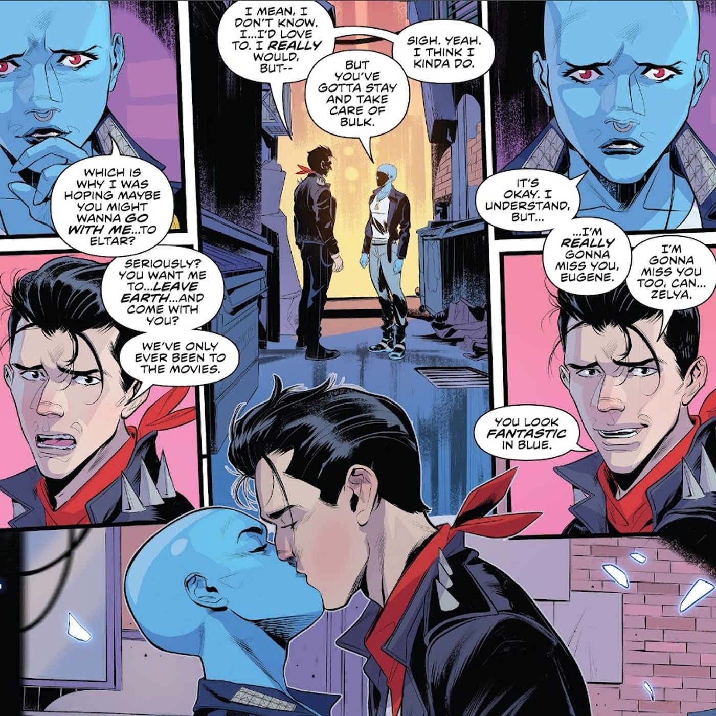 La mayor parte del tiempo en el programa de televisión original, Bulk y (especialmente) Skull expresaron estar enamorados de Kimberly. Entonces, cuando Kimberly finalmente acepta una cita con Skull en los cómics, debería ser su sueño hecho realidad. Desafortunadamente, llega justo después de que ella rompe con el nuevo Green Ranger, Matt. Está claro para todos, incluido Skull, que esto es solo un rebote. No hay química en su cita, apenas hablan, pero ella intenta besarlo de todos modos.