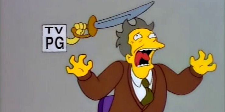 Este no fue el único caso de Los Simpsons Sin embargo, enfrentarse cara a cara con los censores a través de metabromas. Una Simpsons Treehouse of Horror Halloween especial vio a la serie matar horriblemente a un censor de la red mientras estaban ocupados contando los momentos inapropiados en el episodio en una refutación aún más descarada de la autoridad de la red sobre el contenido del programa. Desde estas salidas anteriores, más rebeldes, Los Simpsons no ha presentado tantas bromas descaradas a expensas de las personas que controlan sus elecciones creativas, pero desde el principio, la serie se apresuró a burlarse de ellas tanto implícita como explícitamente.