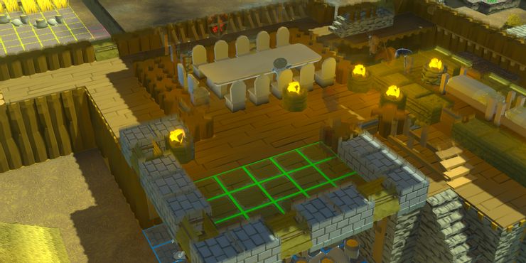 El Gran Salón dará un agradable impulso de humor cuando los colonos coman en su mesa. La habitación debe ser bastante grande, con al menos 50 baldosas. El otro requisito también incluye una mesa grande o mediana; seis sillas o taburetes; cuatro antorchas; y un total de ocho escudos, cabezas de venado, estandartes de tamaño grande o mediano. Si bien no es un requisito, puede ser una buena idea crear una reserva con las comidas para que los comensales no tengan que andar corriendo.