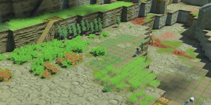 Una vez que estudian agricultura, los colonos pueden comenzar a hacer granjas. Esto requiere suelo fresco y buen clima, por lo que es importante comenzar a cultivar en primavera y cosechar antes de las partes más frías del otoño. Si bien el suelo es más difícil de encontrar en las montañas, generalmente habrá algunos cerca de las crestas. Las coles, las zanahorias y las remolachas deben plantarse al principio, ya que cada una tarda varias semanas en crecer por completo. Las remolachas terminarán siendo las más útiles, ya que tienen una vida útil prolongada de casi un mes. También se pueden consumir hierbas, grosellas y cebada, pero son mejores para otros artículos como cerveza y medicinas.