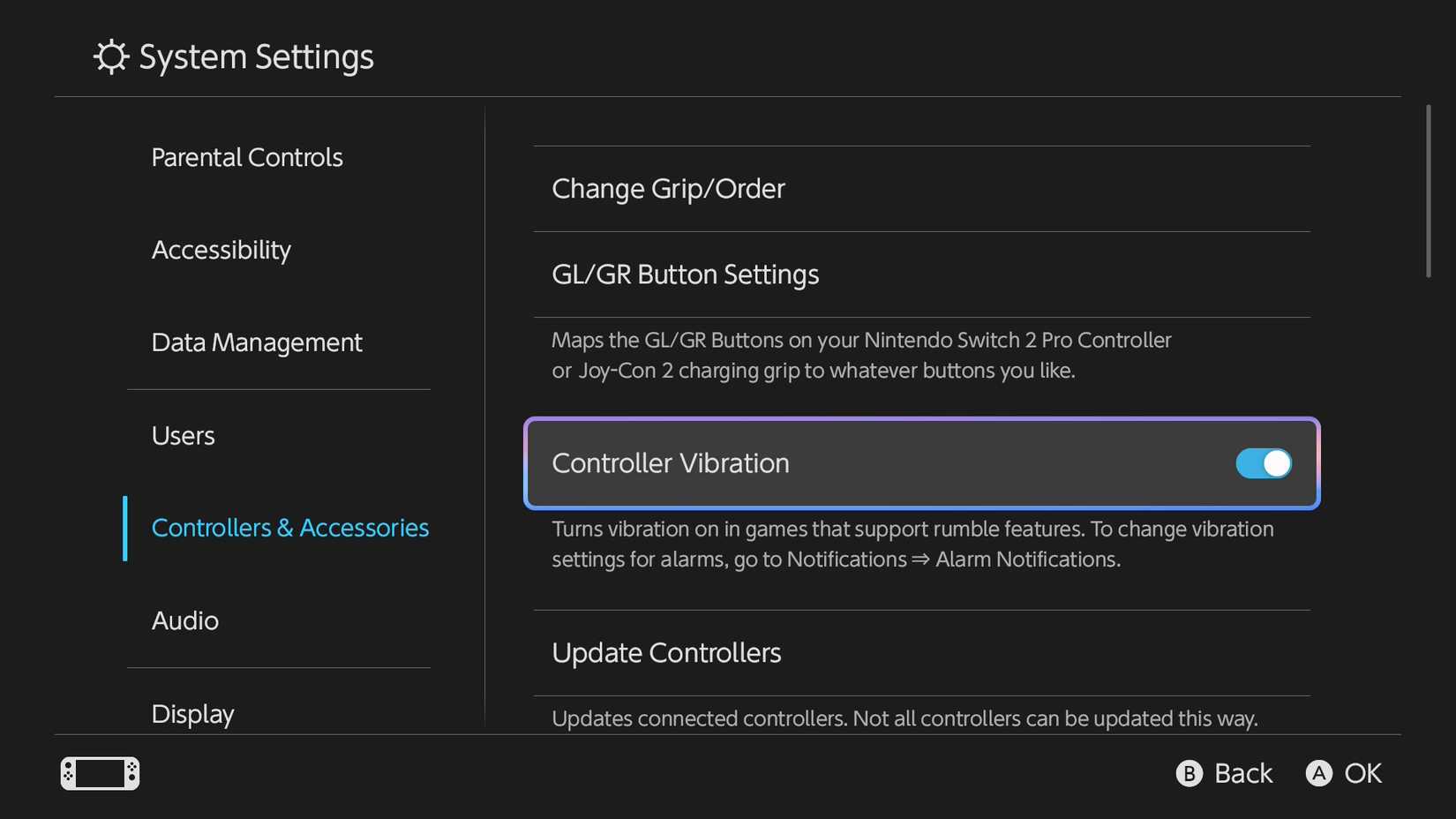 Esta no es una configuración en la que pienso a menudo, pero utilizar características de rumble/vibraciones para sus controladores (particularmente su Joy-Con cuando está conectado a su interruptor 2) puede afectar potencialmente la duración de la batería. Esto se debe a que su Switch 2 está trabajando horas extras para simular Rumble, Una característica antigua que Nintendo ha asociado con su hardware desde la Nintendo 64.