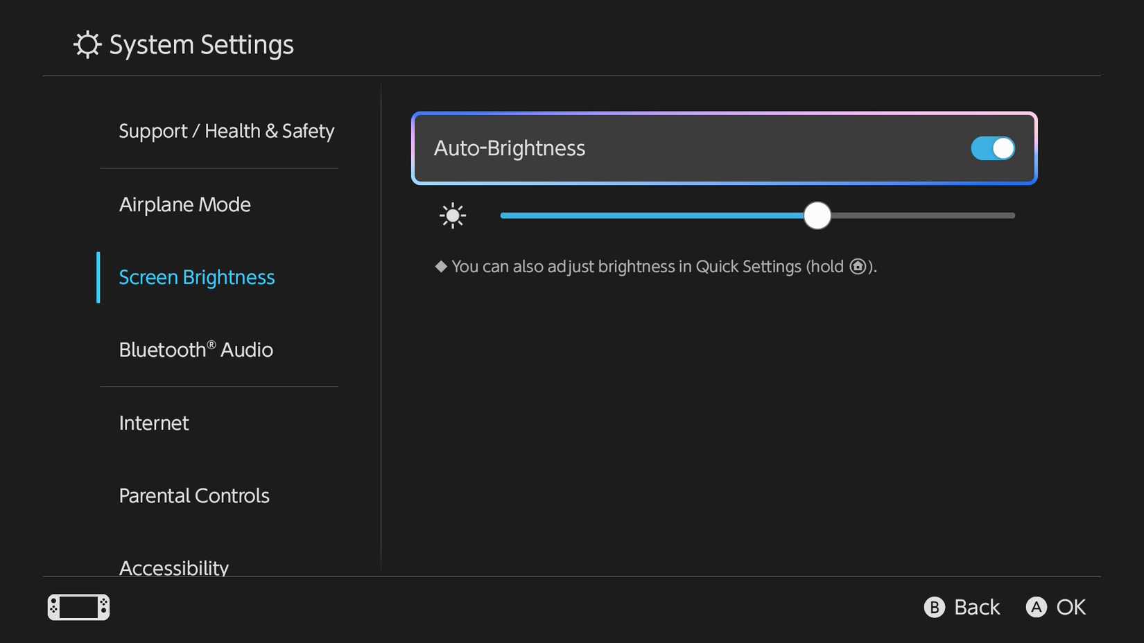 En caso de duda, Bajar su brillo puede ayudar a conservar una valiosa duración de la batería en el momento. Esto es especialmente útil para los casos en los que solo está pasando por los menús y descargando elementos para el mantenimiento, y no está jugando juegos que requieran imágenes vibrantes. El Switch 2 conserva la característica “Auto-brillo” de la familia de sistemas Switch si también desea seguir esa ruta.