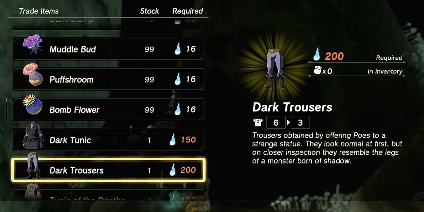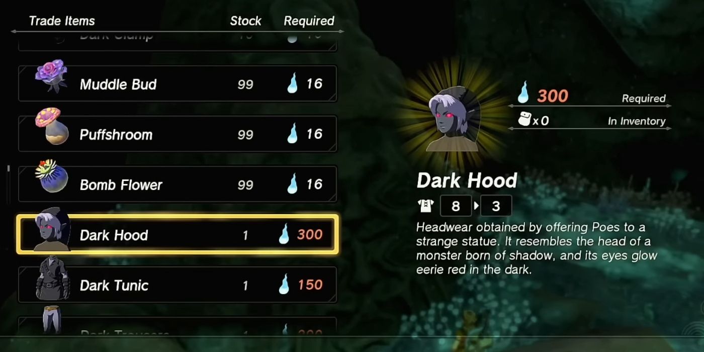 Deberá reunir y luego intercambiar un total de 650 Poes para obtener el conjunto completo de armadura Dark Link en Zelda: lágrimas del reino.