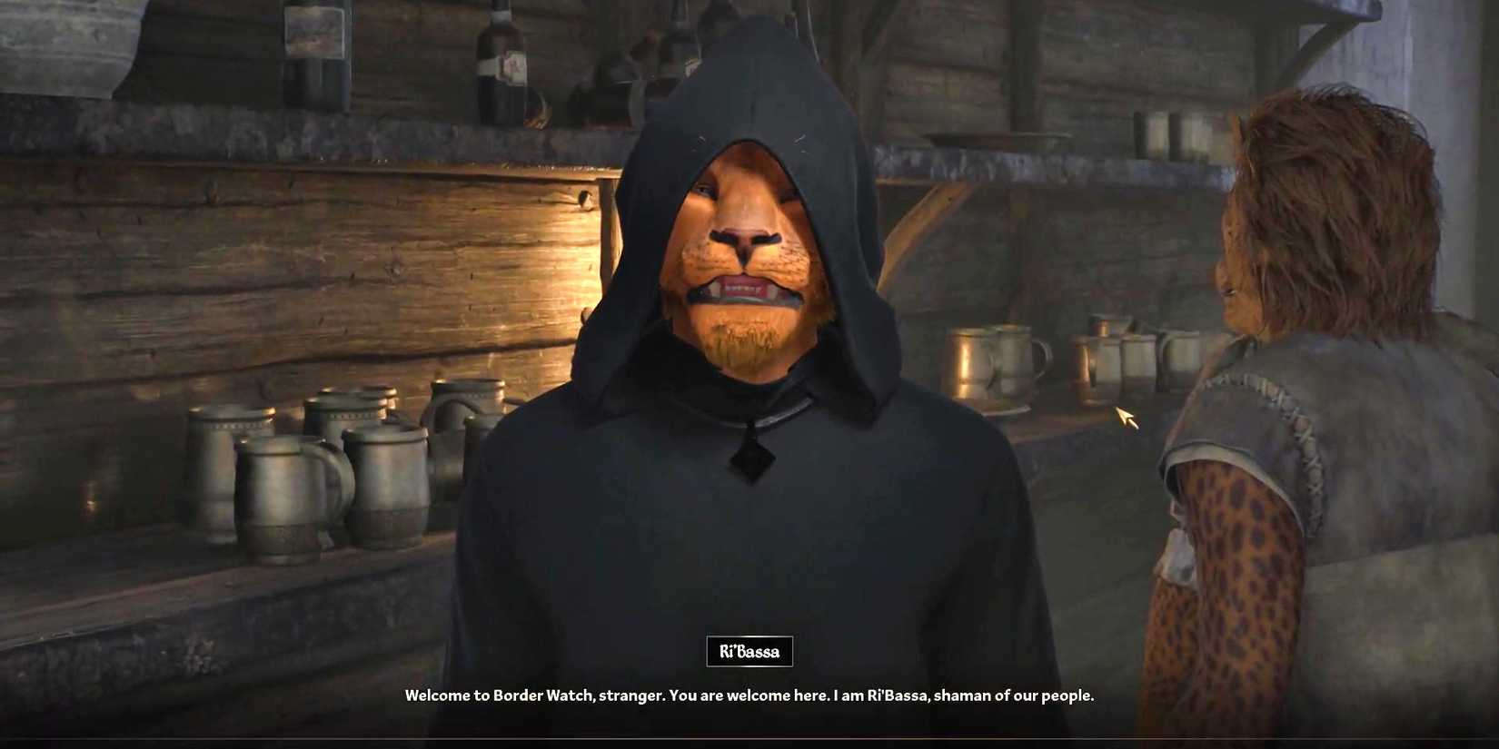 Ve (o regresa) a la reloj de la frontera y comience a preguntar sobre la profecía de K’sharra. La mayoría de los NPC te señalarán Bassa, el chamán local. Por lo general, se encuentra deambulando por el pueblo relativamente pequeño, por lo que puede ser un poco difícil de encontrar. Si tiene problemas, pruebe el Border Watch Inn a las 11 a.m. o a las 7 p.m., o su hogar entre las 10 p.m. y las 4 a.m.