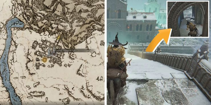 La otra mitad del medallón secreto de Haligtree está oculta en un lugar oscuro en el suroeste de Liurnia. Albus, un NPC disfrazado de olla, estará sentado al final de un camino cuesta arriba cerca de Village of the Albinaurics. Golpéalo una vez para quitarle el disfraz y le dará al jugador el lado derecho del medallón. Regresa al Ascensor Rold y viaja hacia el norte hasta Ordina, Pueblo Litúrgico. Debajo de la larga escalera que conduce a la ciudad, los jugadores encontrarán el Black Knife Set en un cadáver.
