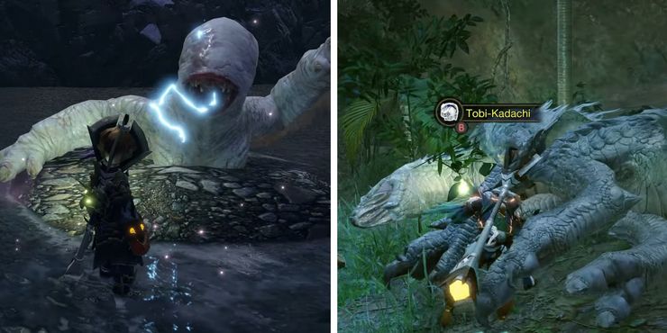 En cuanto a Tobi-Kadachi, este Fanged Wyvern es agua, fuego y hielo, siendo el agua el más efectivo en combate. Tobi-Kadachi también es susceptible a los ataques de Veneno, Waterblight y Blast en romper el sol. Además, este monstruo a menudo intentará infligir Thunderblight a los cazadores durante su estado cargado, lo que hará que los jugadores se vuelvan más vulnerables a quedar aturdidos. Por lo tanto, se alienta a los Cazadores a traer o encontrar Nulberries para negar este estado mortal. Además, cada vez que Tobi-Kadachi se cuelga de un árbol para preparar un ataque deslizante, usar Flashbugs es muy efectivo y hace que el monstruo caiga al suelo.
