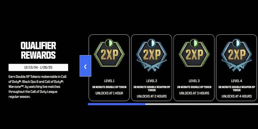 Puedes esperar obtener tokens de XP de doble arma y XP de doble nivel alternados de 30 minutos por cada 30 minutos de tiempo de partido que veas durante los partidos de clasificación, hasta 14 horas de visualización. Estas valiosas recompensas pueden hacer que el nivel avance en busca de nuevos BO6 armas en un abrir y cerrar de ojos. También son excelentes para jugadores que buscan alcanzar el máximo prestigio en Operaciones negras 6.