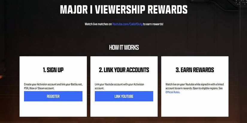 Este año, las recompensas para los espectadores van desde fichas de XP doble hasta un plano de arma único para cada ciclo de torneo importante. Sin embargo, los torneos importantes no son la única forma de ganar recompensas BO6 gratuitas. Los partidos clasificatorios te otorgarán fichas de XP doble gratis a medida que acumules horas de visualización. Para aprovechar al máximo esta oferta, todo lo que necesita es un Activisión cuenta y un YouTube cuenta, así que así es como se hace.