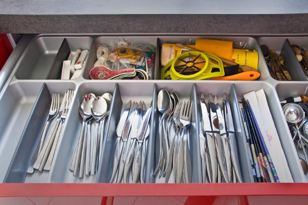 Los divisores de cajones son excelentes para mantener organizadas todas sus pequeñas herramientas. Puede dividir fácilmente sus cajones con un pequeño trozo de madera u organizadores de cajones prolijos que puede encontrar en varias tiendas. La clave aquí es asegurarse de que todo tenga un lugar, que sepa dónde está ese lugar y que todos en su hogar sigan la regla de ubicación.