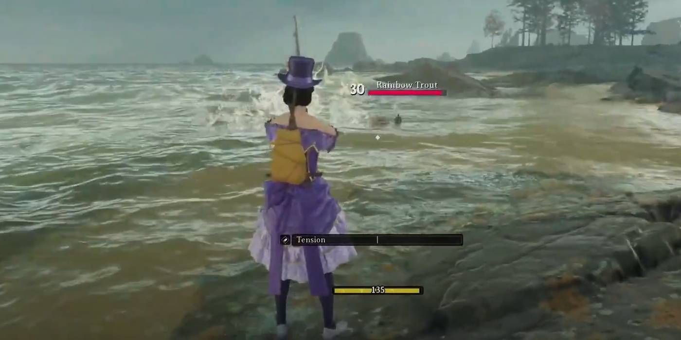Necesitas mantén la tensión en tu línea para evitar que el pez se salga del anzuelo, pero mantener el equilibrio cuesta mucha resistencia de tu personaje. Mantenga la barra de tensión lo más cerca posible del centro. presionando el botón de transmitir de vez en cuando. Con el tiempo, el pez perderá toda su salud y atraparás un animal que podrás cocinar para la cena. Ruiseñor.