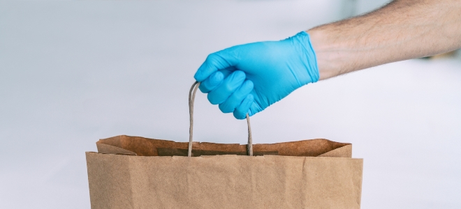Si no necesita estar en público, quédese en casa para reducir el riesgo de propagar la infección. Cuando tenga que buscar servicios esenciales, use una máscara y guantes, desinfecte sobre la marcha y permanezca al menos a seis pies de los demás en todo momento.