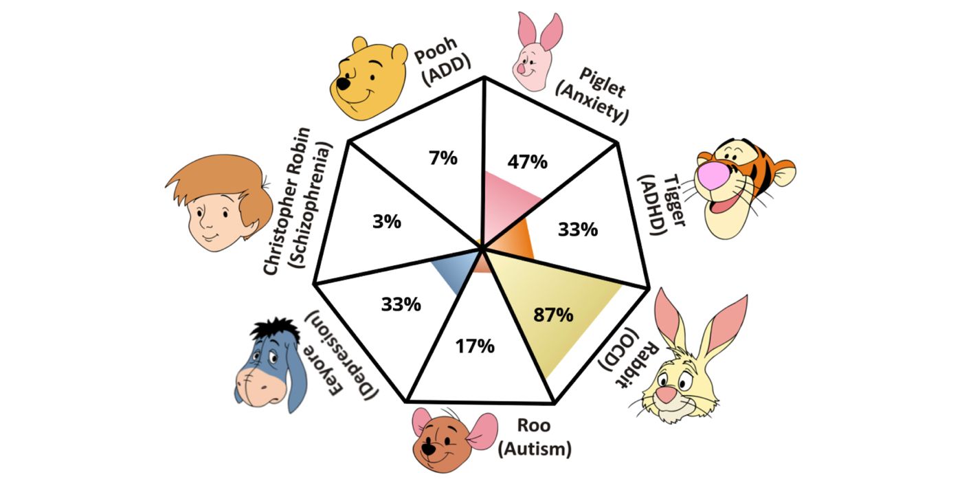 El Winnie the Pooh La prueba es un poco más profunda que las otras pruebas de personalidad de la plataforma y pretende diagnosticar trastornos psiquiátricos basándose en las respuestas de una persona. La prueba está alojada en el sitio web IDRlabs.com, que también tiene muchas otras pruebas que los usuarios pueden realizar. El Winnie the Pooh La prueba tiene 33 preguntas, al final de las cuales a los usuarios se les presentarán sus resultados en un gráfico, emparejados con un Winnie the Pooh personaje. El personaje con el que más coincide un usuario se presenta como resultado final, junto con una explicación detallada de sus rasgos de personalidad.