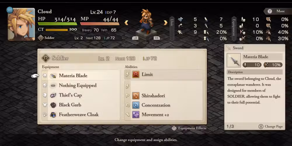Estadísticas de la nube en FF Tactics: The Ivalice Chronicles