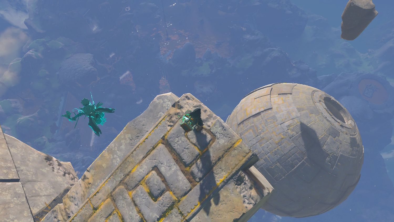 Para llegar al Santuario, los jugadores deben deslizarse por el agujero en el costado de la esfera. La esfera gira constantemente, lo que puede dificultar el aterrizaje. Sin embargo, hay un pequeño trozo de roca flotante justo encima del santuario, en el que Link puede aterrizar primero, lo que brinda a los jugadores una plataforma sólida para cronometrar su salto hacia el Santuario.