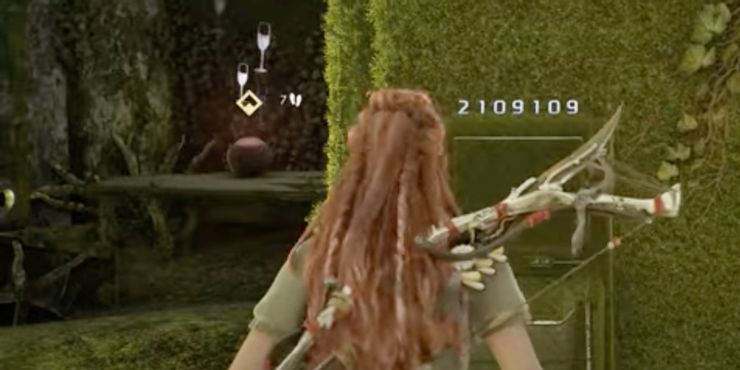 El elevador conduce al fondo donde está la caja, por lo que los jugadores pueden arrastrarla hacia el elevador y usarla para llegar a los pisos más altos del edificio. Hay un cofre de objetos de valor antiguos en la repisa inmediatamente después de que los jugadores suben a la repisa desde la caja. Después de subir y saltar al siguiente edificio, también habrá una Caja de objetos valiosos antiguos para recoger. En este edificio, los jugadores encontrarán una habitación con una caja de suministros antigua y un punto de datos para escanear y revelar que el código de acceso es 10 seguido del número del piso que Horizonte Prohibido Oeste‘s Aloy está actualmente en, que es el noveno piso. Los últimos tres dígitos del código de la puerta son 109. Luego, los jugadores pueden regresar a la sala principal donde está la puerta cerrada.