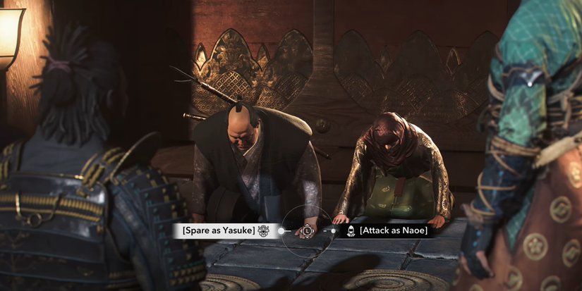 Para Naoe y Yasuke, cualquier parte de las conversaciones que potencialmente afecten las opciones romances con otro personaje. un corazón junto a esa opción para ayudarlo a evitar perderse los diálogos de clave. La decisión en esta búsqueda es una de las muchas decisiones que puedes tomar junto con ahorrar o matar a Ichi-Hime y Takahashi.