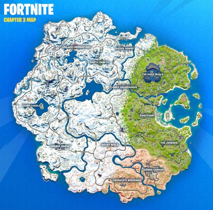El cambio más notable de Fortnite El mapa del Capítulo 3 es que todo se ha puesto patas arriba. En los capítulos anteriores, se agregarían nuevos puntos de interés y les sucedería algo a las secciones del mapa. por ejemplo, en Fortnite Capítulo 2, el único gran cambio que sucedió fue que una parte del mapa estaba rodeada de agua al comienzo de un partido. Gracias a la introducción de Unreal Engine 5 a Fortniteel Capítulo 3 es uno de los mapas más atractivos que ha visto el juego, que puede ser más notable en los sistemas de próxima generación como PlayStation 5 y Xbox Series X.