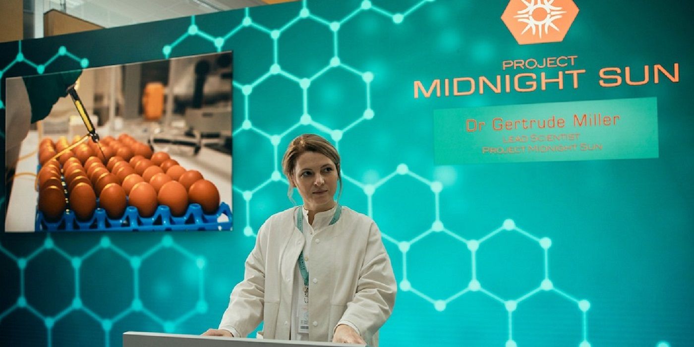 Después de experimentar con éxito con los microbios modificados en pollos, los científicos involucrados en el Proyecto Midnight Sun crearon un suero y lo inyectaron en muchos huevos de gallina sin fertilizar. De los dos óvulos que eventualmente mostraron signos de vida, uno tenía pulso y estaba etiquetado como Sistema de Unidad Genética 1 (luego se convirtió en Gus), mientras que el otro tenía el virus H5G9. La historia del Proyecto Midnight Sun en Goloso La temporada 2 demuestra que Gus fue creado accidentalmente en los laboratorios de Fort Smith cuando Gillian Washington estaba tratando de crear un suero que desafía la edad.