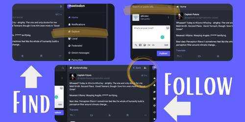 La capacidad de seguir hashtags en Mastodon es una característica relativamente nueva. Tampoco se ha implementado en cada cliente o incluso en la aplicación nativa todavía. Para seguir, comience desde el navegador y diríjase a la barra de búsqueda. A continuación, escriba el hashtag deseado, por ejemplo, #Doctorwhoday. Los usuarios también pueden encontrar etiquetas de tendencia en la pestaña Explorar o en las publicaciones de los usuarios. Seleccione el hashtag, y Mastodon extraerá todas las publicaciones disponibles que contienen la palabra clave. Cuando se active, un ícono de una persona aparecerá a la derecha del hashtag. Seleccione el icono para seguir y deseleccionar el icono para dejar de seguir. Esta nueva característica ha tenido un gran comienzo, pero aún necesita algo de trabajo.