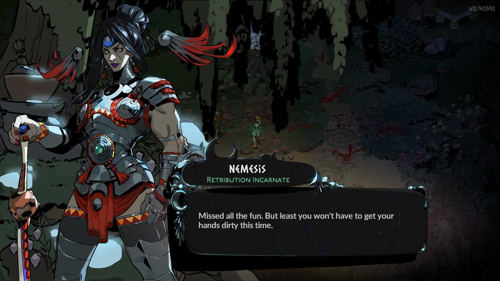 Nemesis es Retribution Incarnate y el rival central de Melinoe en Crossroads en infierno 2. La hija de Nyx es increíblemente dura con Melinoe, aunque eso no parece impedirle ser una opción romántica viable para la Princesa del Inframundo. Nemesis tiene un caparazón resistente, pero con suficiente néctar todo es posible.