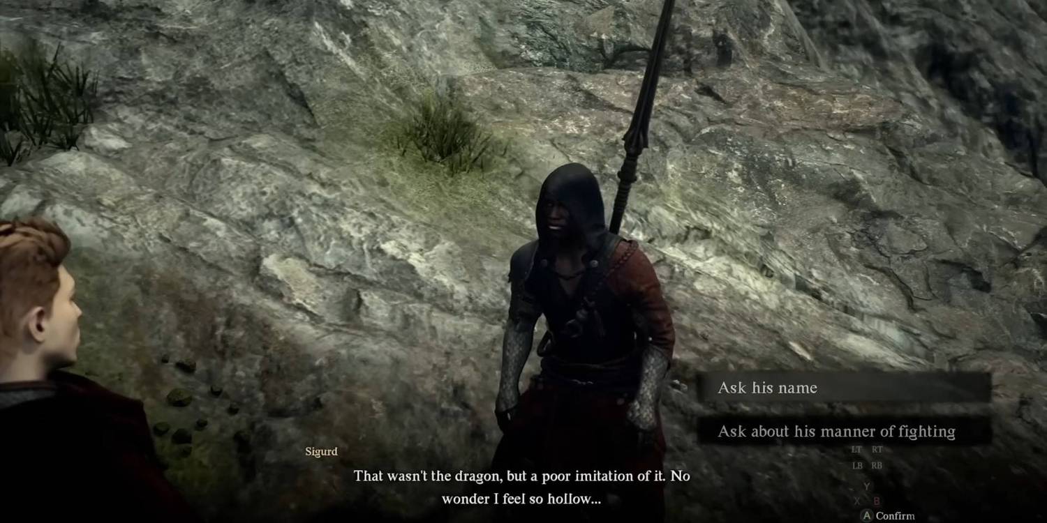 Después de que el dragón muera o huya, también puedes hablar con el NPC encapuchado Sigurd, quien te otorga la excelente vocación de Mystic Spearhand. Si derrotas al dragón, También le da el pergamino Paladins Enigmata, que enseña la habilidad Wild Furie.. Si el dragón huye, el objeto aún se puede obtener si el jugador encuentra y mata al dragón más adelante.