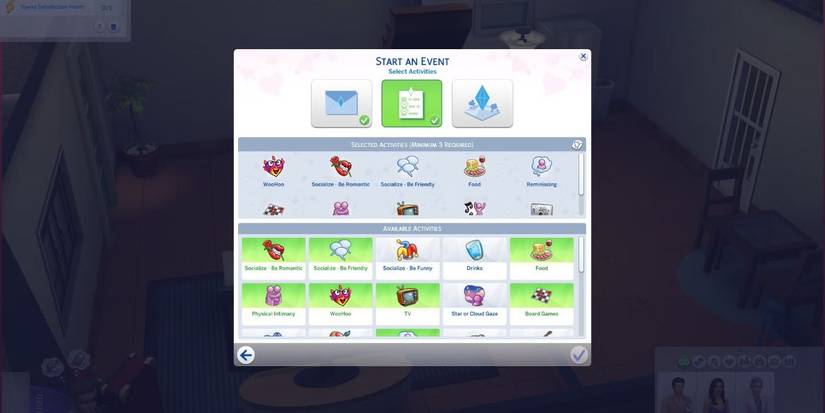 Esto se diferencia de las citas románticas, ya que su objetivo principal es simplemente socializar con el otro Sim 10 veces, entre otras tareas. Aquí, puedes ser juguetón, bromear 3 veces y contarle una historia a tu cita.