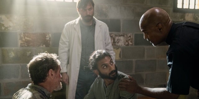 El padre Gabriel (Seth Gilliam) luego lleva a Siddiq y Dante de regreso a la cárcel para tratar al Susurrador, ahora temblando de dolor y sufriendo de respiración dificultosa y pupilas dilatadas. Ardiendo, el Susurrador vomita sangre y expira rápidamente. Siddiq se da cuenta de que Dante administró lo que Dante cree que era milenrama, una hierba destinada a tratar el dolor y la inflamación. El Whisperer recibió en realidad cicuta, una planta venenosa que puede causar dolor muscular, frecuencia cardíaca rápida y disminuida, parálisis e insuficiencia cardíaca, pulmonar y renal antes de la muerte por insuficiencia respiratoria.