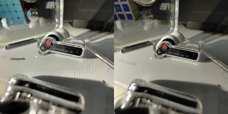 Alternativamente, los usuarios de Nothing Phone (1) pueden tocar el ícono ‘0.6x’ sobre el botón del obturador para cambiar al sensor ultra gran angular y colocar la cámara cerca del sujeto. Dado que el sensor tiene la función de enfoque automático, la lente ultra gran angular enfoca automáticamente el sujeto. Las imágenes capturadas se ven casi idénticas al modo macro dedicado. La foto de arriba muestra los resultados de ambos, uno al lado del otro. La imagen de la izquierda se tomó con el modo ultra gran angular y la imagen de la derecha se tomó con el modo macro. Aparte de una exposición ligeramente inferior en la imagen de la derecha, no parece haber otras diferencias. El tamaño de ambas imágenes también es similar.