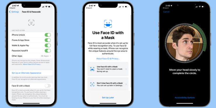 Face ID es una forma fácil y conveniente de desbloquear su iPhone y, a partir de marzo de 2022, manzana incluso te permite usar Face ID mientras usas una máscara. Desde su debut en el iPhone X en 2017, Face ID ha sido el sistema de seguridad biométrica de Apple. ¡Y es un gran sistema en general! Face ID es rápido, confiable y requiere menos entrada que Touch ID. Simplemente mire su iPhone, espere un breve segundo para que Face ID escanee su rostro, y eso es todo.