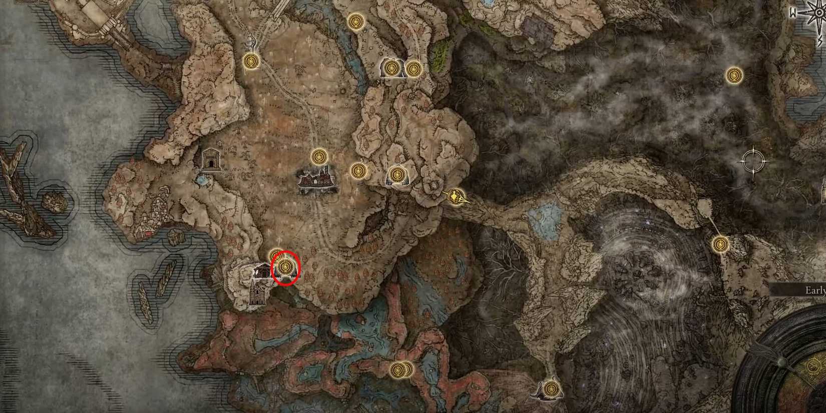 Otra zona, el pie del pico dentado, será el lugar donde podrás encontrar el altar mientras exploras. Desde aquí, Pasar por el dragón muerto y cornisas abatibles antes dirigiéndose hacia el norte a la Tumba Oculta de Charo en Aro de fuegoun lugar marcado por flores de color rojo brillante. Esta sección más grande del mapa DLC será donde podrás comenzar a buscar la Cárcel de los Lamentadores, un lugar oculto a la vista de la mayoría de los viajeros.