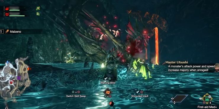 Cuando los jugadores se enfrenten a Malzeno en combate, notarán que algunos de sus ataques durante su fase neutral descargarán Bloodblight de varias maneras. El Elder Dragon tiene el control total de sus habilidades Bloodblight y puede infligir a los jugadores a corta distancia, desde AoE e incluso desde la distancia. Como se mencionó anteriormente, la prioridad de un cazador afectado por Bloodblight debe ser estar a la ofensiva, atacando a Malzeno para recuperar su HP perdido. Desafortunadamente, no hay forma de eliminar este efecto, excepto dejar que se desvanezca.
