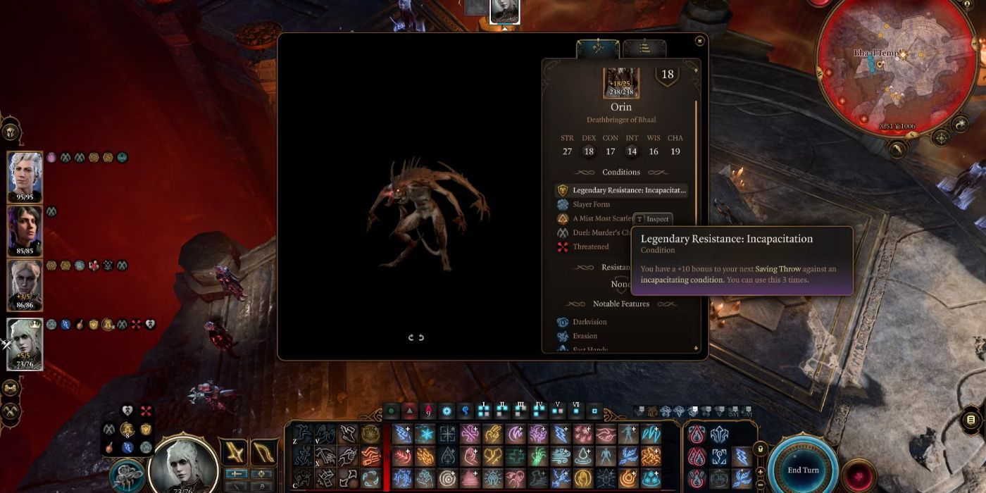 El caótico alboroto de Orin se intensifica a medida que secuestra a tu compañero, agotando la paciencia de los jugadores. Conscientes de esta trampa, los aventureros aún deben aventurarse al Templo de Bhaal y enfrentarla en una de las batallas contra jefes más formidables del Acto 3. Superar a Orin libera a tu aliado y asegura su Netherstone. y un arma legendaria en Puerta de Baldur 3activos clave necesarios para ayudarte en tu batalla final contra Elder Brain.