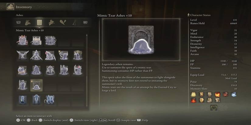 Si todavía tienes problemas con el comandante Gaius, no hay nada de malo en invocar una ceniza espiritual para que te ayude en tu lucha contra él. Mimic Tear es la elección básica para cualquier personaje, ya que copiará tu estructura exacta. Otras opciones notables incluyen Black Knife Ticheque debilitará a los enemigos, y el Dung Eater, una de las invocaciones con mayor HP.